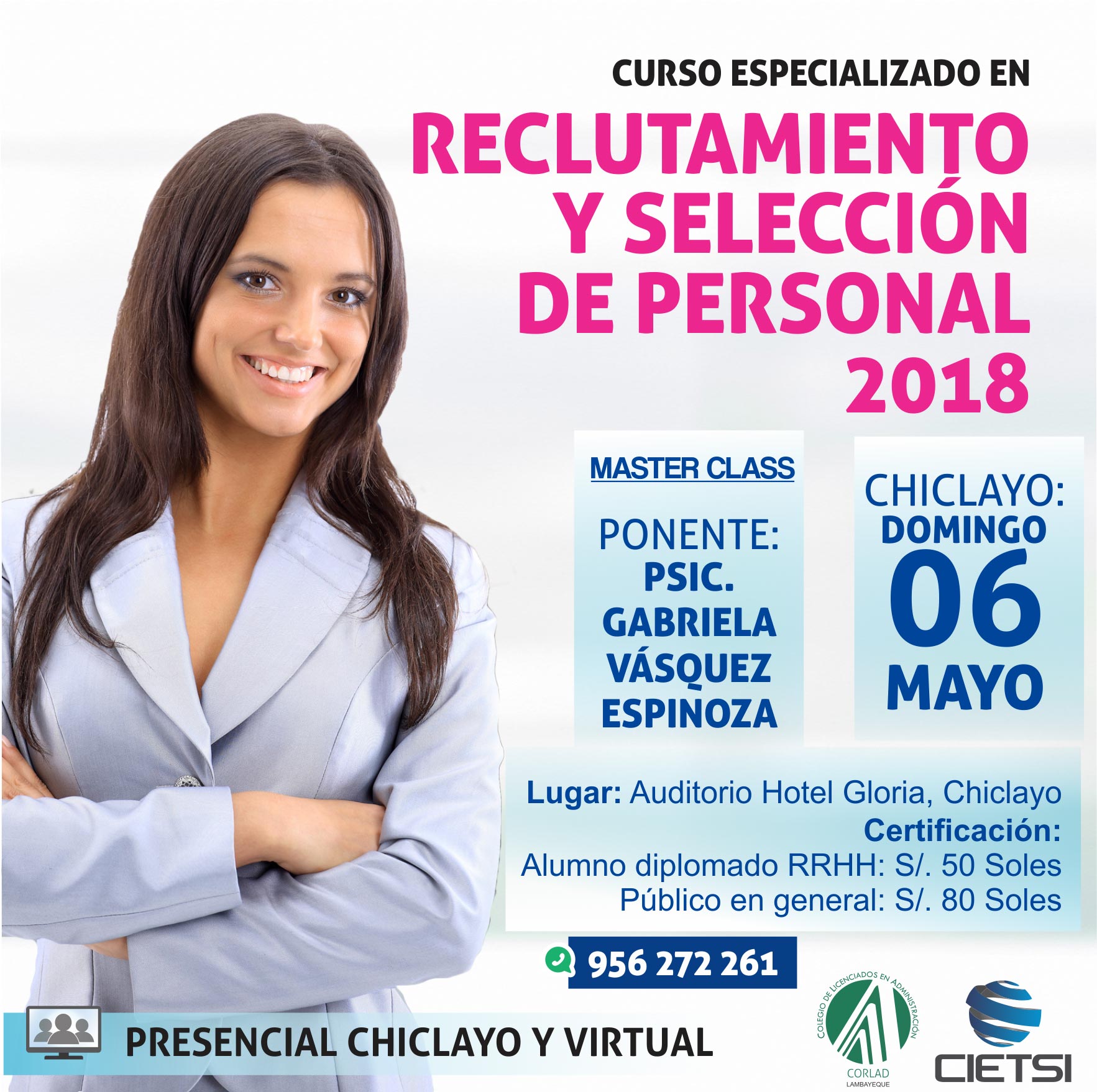 + Estudiantes del Diplomado de Gestión de Recursos Humanos (opcional): S/. 50 Soles