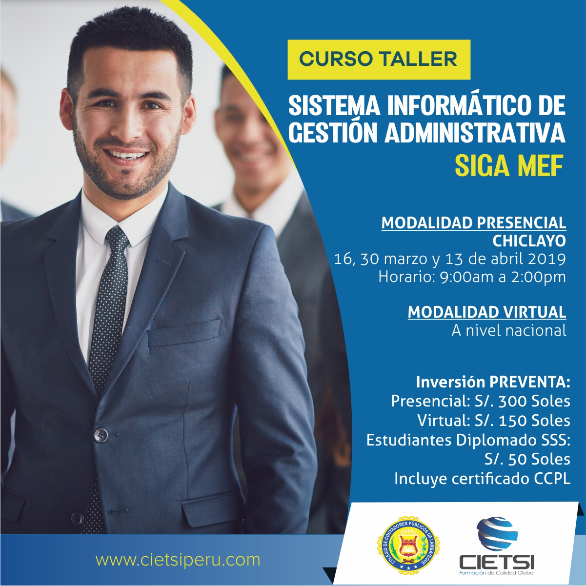 Opcional: S/ 50 Soles, firmado por el Colegio de Contadores Públicos de Lambayeque y Centro de Altos Estudios Cietsi, equivalente a 100 horas lectivas.