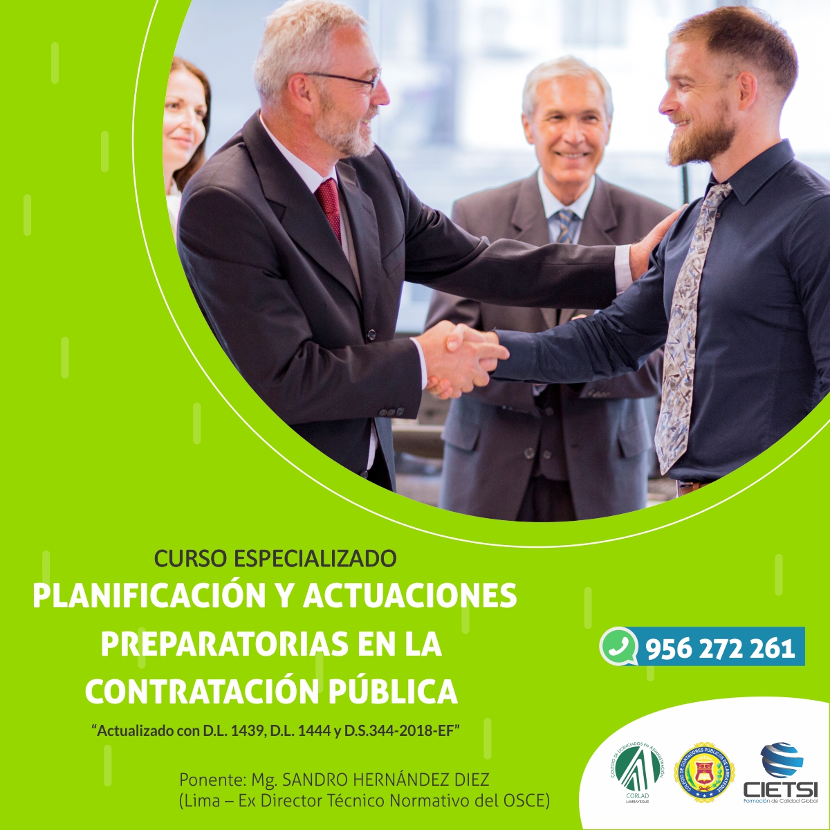 El curso te permitirá el desarrollo de capacidades y competencias técnicas vinculadas a la Planificación y Actuaciones Preparatorias en la Contratación Pública según el marco normativo y procedimental establecido en el Decreto Legislativo N° 1439 del Sistema Nacional de Abastecimiento, el Decreto Legislativo N° 1444 que modifica la Ley N° 30225, el Decreto Supremo N°344-2018-EF que modifica el Reglamento de la Ley de Contrataciones del Estado.
