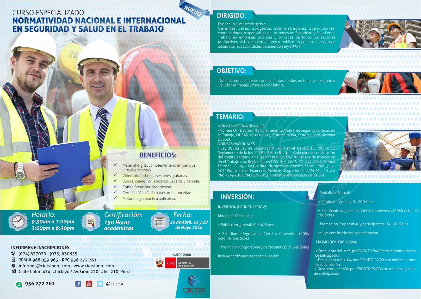 Importante: Para los alumnos que están matriculados en el diplomado de seguridad y salud en el trabajo y fiscalización laboral pueden solicitar la certificación de este curso previo pago de la cuota correspondiente.