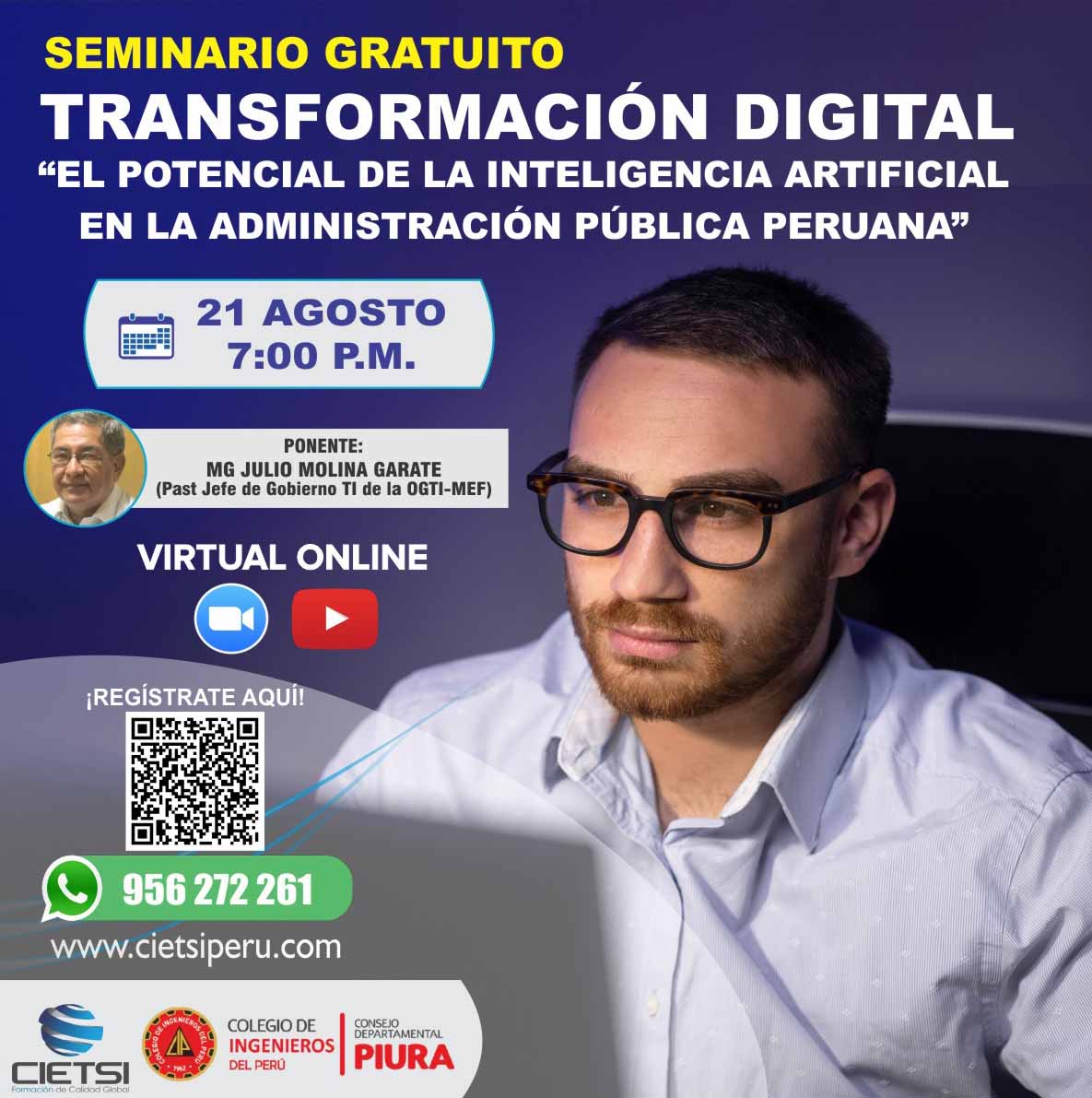 SEMINARIO GRATUITO TRANSFORMACIÓN DIGITAL: EL POTENCIAL DE LA INTELIGENCIA ARTIFICIAL EN LA ADMINISTRACIÓN PÚBLICA PERUANA