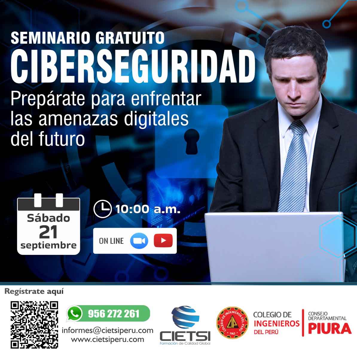 Este seminario proporcionará a los participantes una comprensión integral de las amenazas cibernéticas, así como estrategias y soluciones para fortalecer sus defensas en el panorama digital actual y futuro.