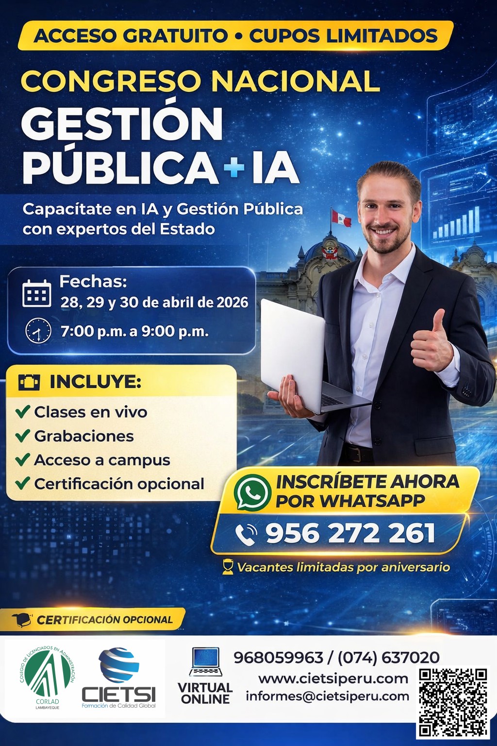 + Los precios de certificación en promoción son válidas hasta el 30 de abril de 2026 (última fecha del congreso), luego estará a costo regular.